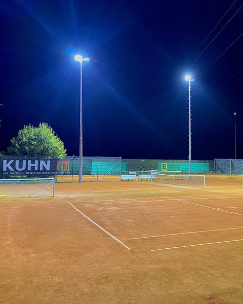 Unsere drei Courts sind jetzt mit hocheffizienten LED-Leuchten ausgestattet. Diese sparen nicht nur bis zu 60 % Strom ein, sondern sorgen auch für eine wesentlich hellere Ausleuchtung mit 300–400 Lux pro Quadratmeter. Das entspricht der Beleuchtungsklasse 2 – also mehr als genug Licht für anspruchsvolle Ballwechsel und spannende Netzduelle.