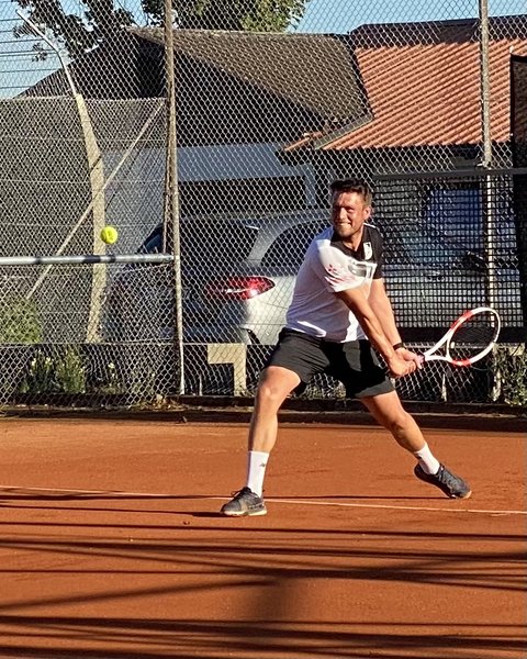 Henning und sein Kontrahent Pascal Lehar agierten in der Anfangsphase etwas nervös, denn das zuvor stattfindende Jugendfinale hatte eine ungewöhnlich große Zuschauermenge auf unsere Anlage gelockt. Die ersten Spiele waren daher von vielen Breaks geprägt, doch mit Fortdauer des Spiels zeigte sich vor allem Henning als der konstantere Spieler. Diese Konstanz und Zielstrebigkeit zahlten sich aus: Henning wurde mit einem 6️⃣:2️⃣ und 6️⃣:2️⃣ zum ersten Mal Vereinsmeister bei den Herren.